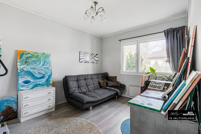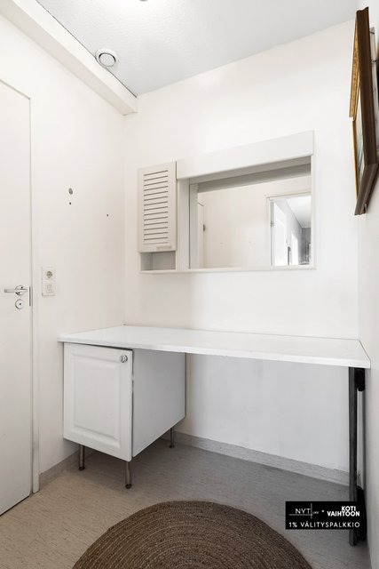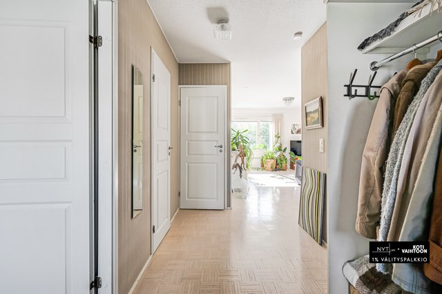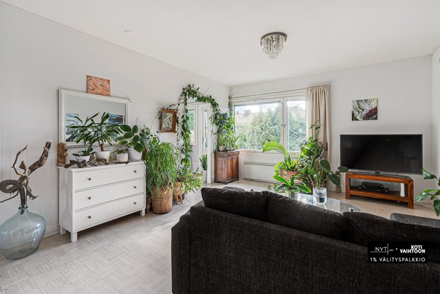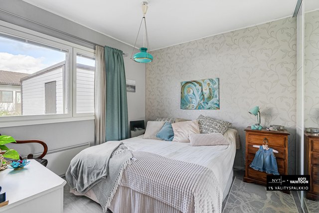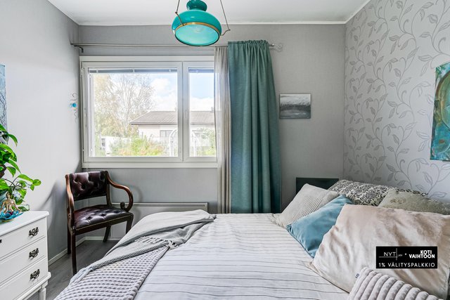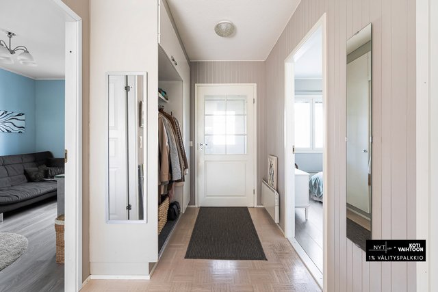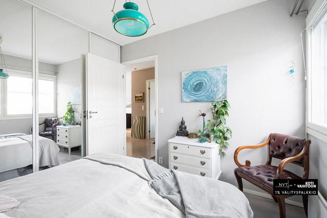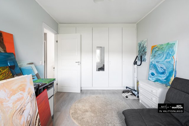Tässä asunnossa on erinomainen pohjaratkaisu. Makuuhuoneet ovat pohjoisen puolella, erillään toisistaan ja kumpainenkin sisältää kattavasti kaappitilaa. Etelään suuntaava olohuone on tilava, monin tavoin sisustettavissa oleva valoisa huone.