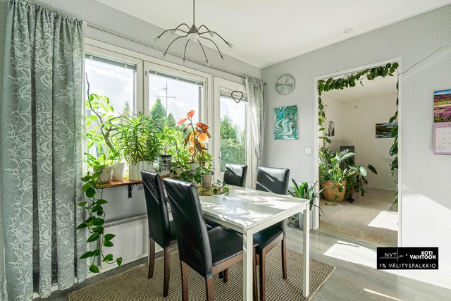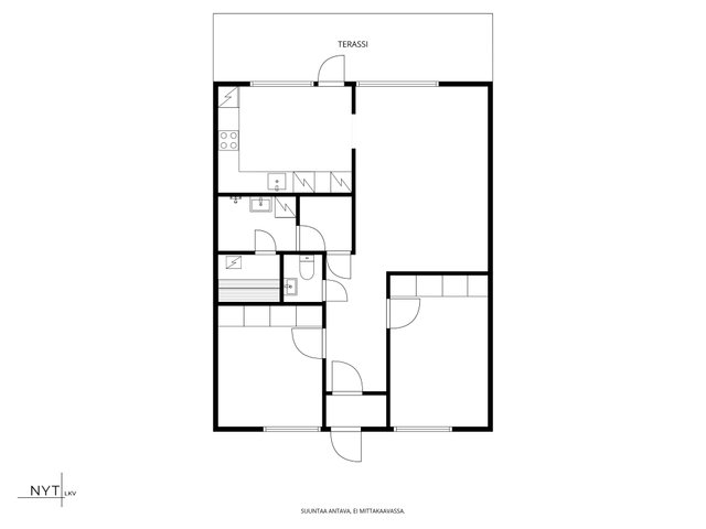- Makuuhuoneet pohjoiseen, olohuone, keittiö ja asunnon terassi etelään.