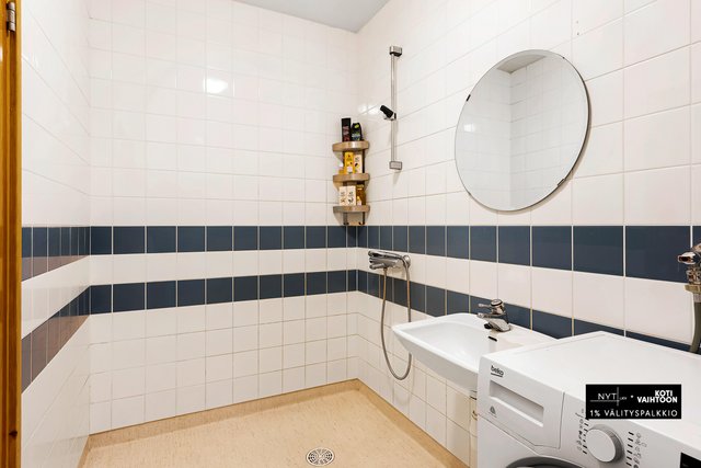 - Suihku, pesukoneliitäntä, lattialämmitys, ja pesuallas