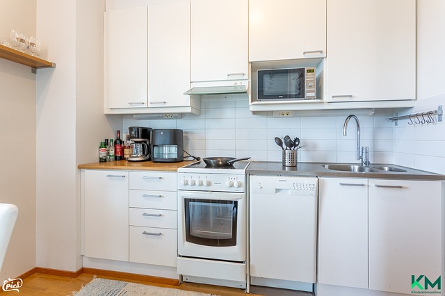 - Jääkaappipakastin, liesituuletin, astianpesukone, ja kiinteät valaisimet