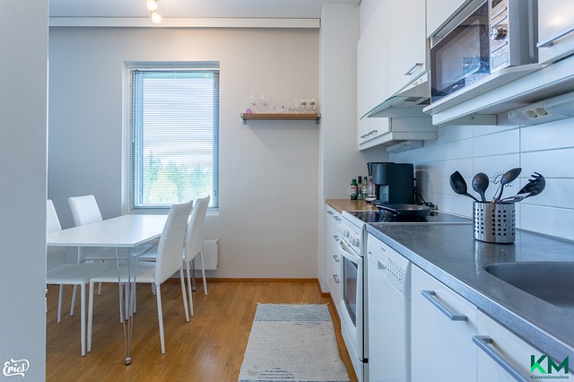 - sälekaihtimet keittiö, olohuone. Lisätietoja sisältyvistä varusteista: kaapistot, kiinteät valaisimet.
