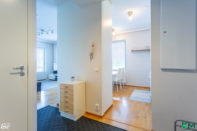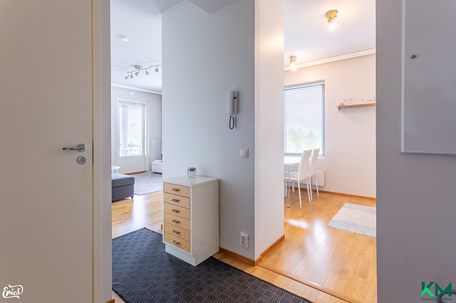 Asunnon lattiat ovat parkettia ja seinät maalattu.
