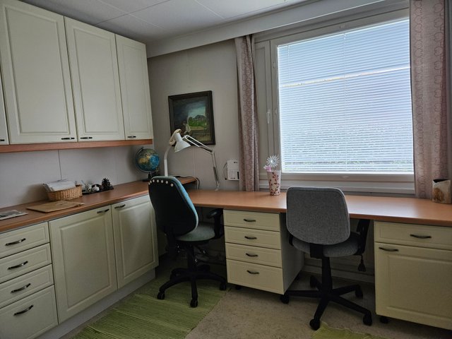 Olohuone, 3 makuuhuonetta, leivontahuone, autotalli, askarteluhuone, varastot