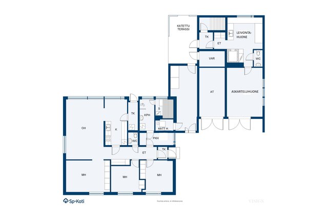 - Pinta-ala ei ole tarkistusmitattu ja todellinen pinta-ala voi olla suurempi tai pienempi, kuin ilmoitettu