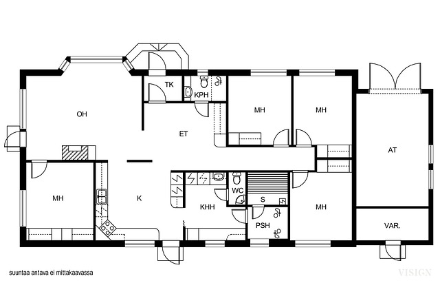 - Pinta-alat on saatu rakennusluvasta ja piirustuksista. Pinta-aloja ei ole tarkistusmitattu, joten ne saattavat poiketa olemassa olevista.