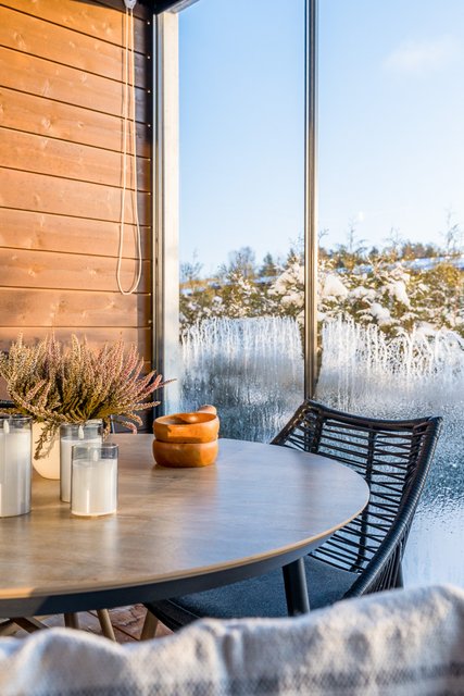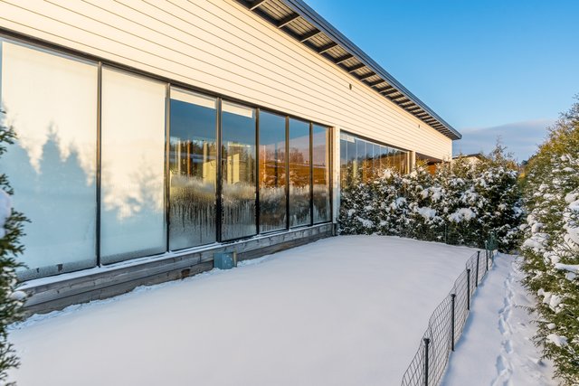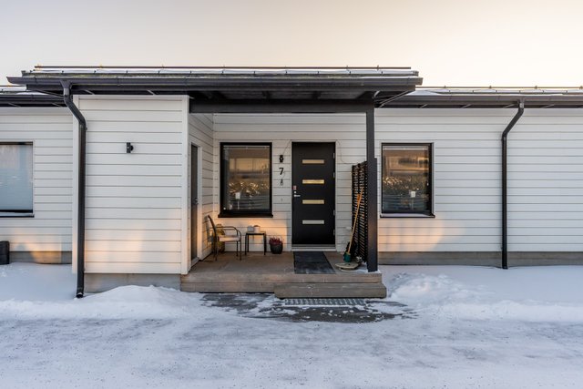 Moderni rivitalokoti lasitetulla terassilla Voivalasta