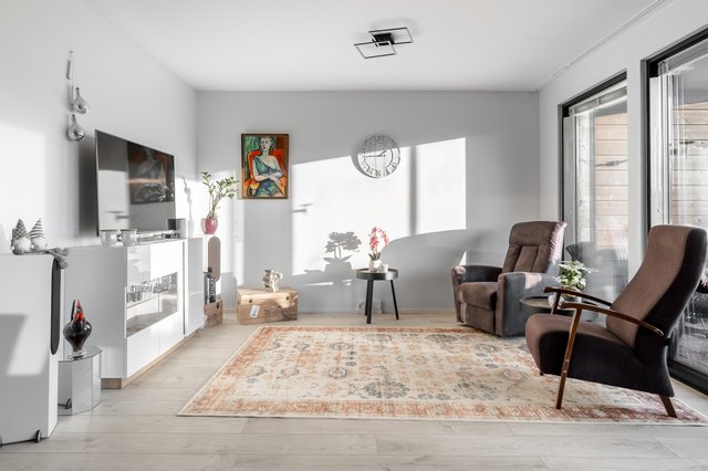Asunnon pohjaratkaisu on erittäin toimiva ja ajaton. Kaksi makuuhuonetta tarjoavat joustavasti tilaa perheelle, etätyölle tai vieraille. Avoin keittiö ja olohuone muodostavat valoisan ja viihtyisän kokonaisuuden, jossa arki ja yhdessäolo kohtaavat luontevasti. Arkea helpottaa erinomaisesti suunniteltu yhdistetty kodinhoitohuone ja pesutilat sekä kaksi wc:tä. Oman saunan lempeät löylyt kruunaavat kokonaisuuden.