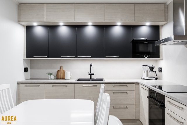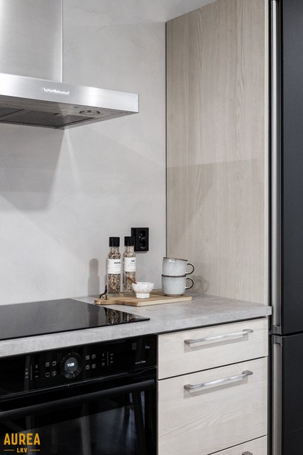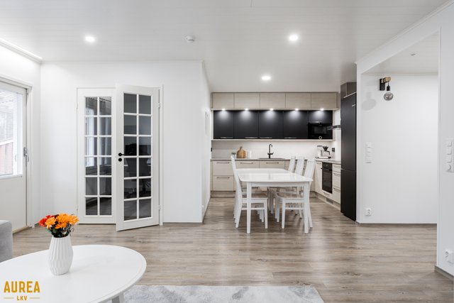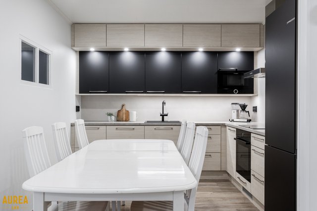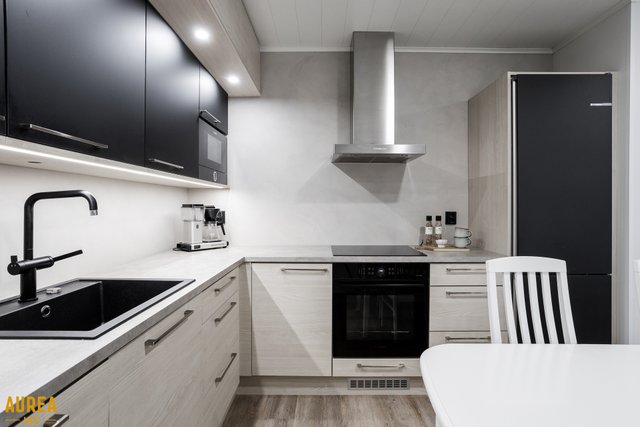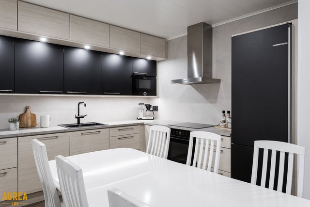 - Keittiö uusittu 2019. Lumia-kalusteet. Mattamustat yläkaapit, alakaapit saarni. Välitilassa mikrosementti. Kodinkoneet: astianpesukone, kiertoilmauuni (pyrolyysi), induktioliesi, jääpakastinkaappi, liesituuletin (talotuuletin), led-valaistus, Lemans kulmakaappi-mekanismi. Seinät: maali, lattia: vinyylikorkki, katto: mdf.