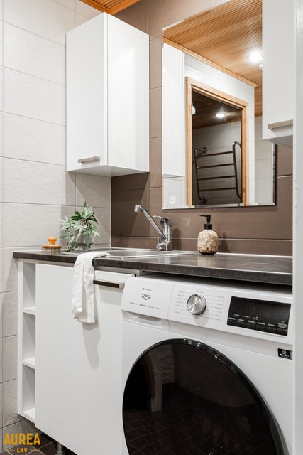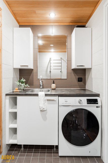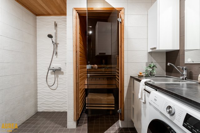 - Kylpyhuone uusittu 2012. Kiintokalusteetpeili, allas,liitännät pyykinpesukoneelle. Kuivauspatteri, lattialämmitys. Seinät: laatta, lattia: laatta, katto: paneeli.