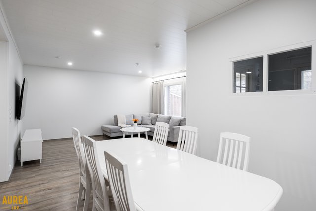 Kolmas makuuhuone on rakennettu olohuoneen yhteyteen 2019, eikä oleskelutiloissa tarvitse siltikään tilasta pihistellä. Varsin toimiva ratkaisu!