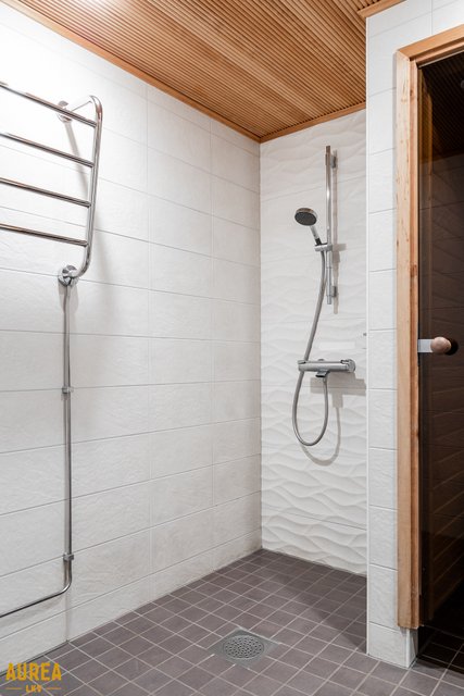 - Oma sauna. Sähkökiuas. Seinät: paneeli, lattia: laatta, katto: paneeli.