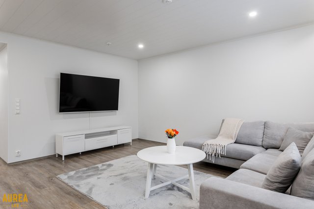 Koti on viime vuosien aikana kauttaaltaan remontoitu. Remontit on tehty ”itselle” ja työnjälki onki moitteetonta. Linjakas yleisilme on ajaton ja kestää vuosia eteenpäin. Pohjaratkaisu on avara ja valoisa. Eteisestä avautuu näkymä keittiöön sekä isoon olohuoneeseen. Tilava olohuone yhdistyy luontevasti ruokailutilaan sekä keittiöön. Keittiö laadukkain kodinkonein ja materiaalein uusittu 2019. Erillinen wc sekä upeasti remontoitu kylpyhuone laattapinnoin. Kylpyhuoneeseen jää vielä tilaa kodinhoidolle. Asunnossa kaksi vaatehuonetta, sekä säilytyskaapistoja. Sisäänkäynnin yhteydessä ulkovarasto. Kaikki remontit on toteutettu Remontti-Idean toimesta.
