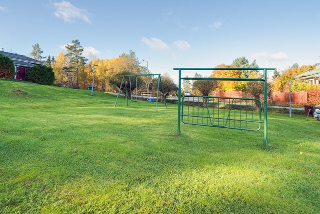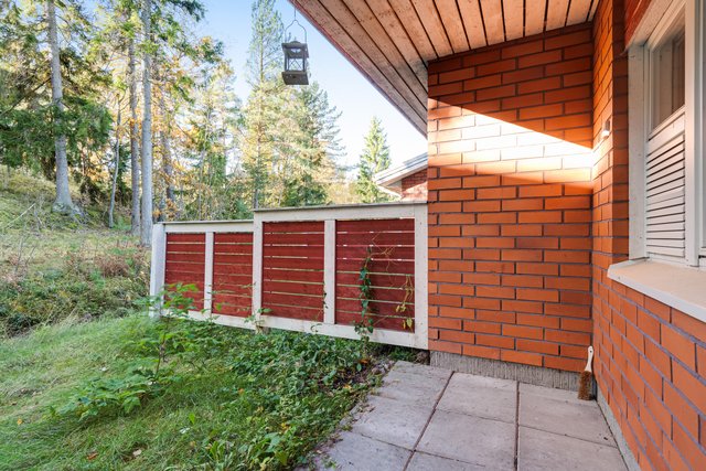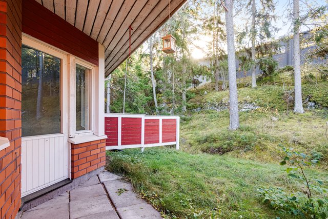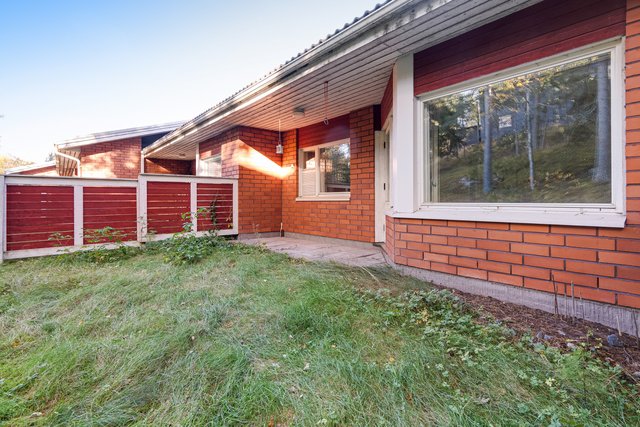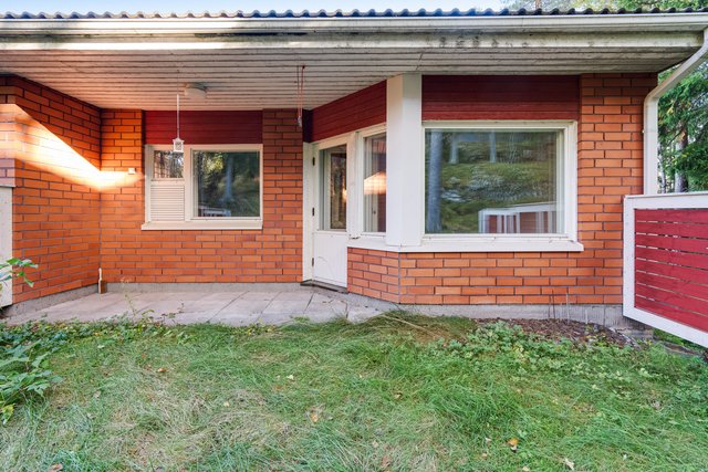 - Asunnon edessä metsään rajoittuva kiva piha-alue.
