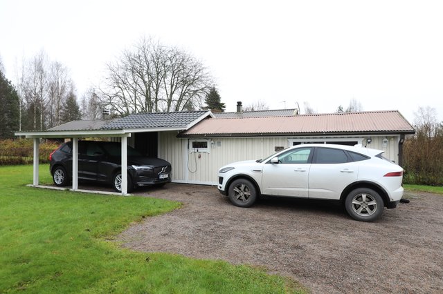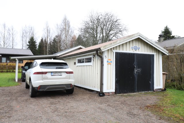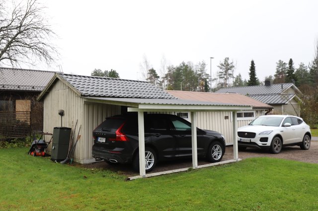 Tontilla on myös erillinen autotalli/varasto sekä autokatos, joka tarjoaa runsaasti säilytystilaa ja suojaa ajoneuvoille. Tontti on oma, ja sen pinta-ala on 940 m², mikä tarjoaa mukavasti tilaa puutarhanhoitoon tai lasten leikkeihin.