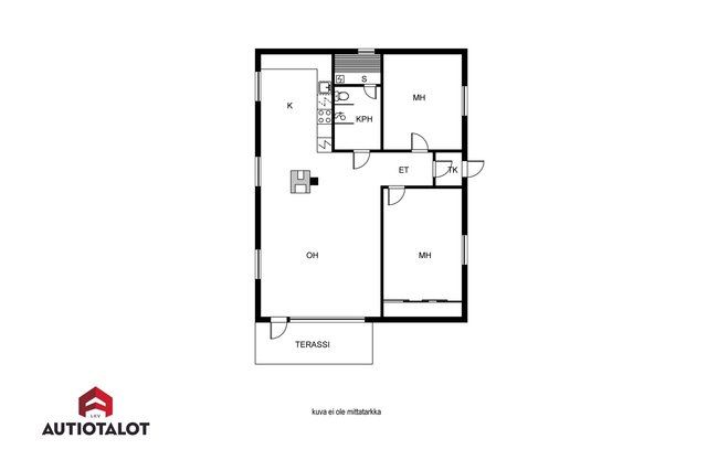 - Rakennuksen ulkomitat n.12 m x 8 m. Pinta-alat saattavat tämän ikäisissä kohteissa (rekisteröity ennen 01.01.1992) poiketa olennaisestikin asuinrakennusten nykyisten mittaustapojen ja standardien (SFS 5139) mukaan laskettavasta asuintilojen pinta-alasta. Pinta-ala voi siis olla edellä mainittua pienempi tai suurempi.