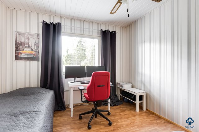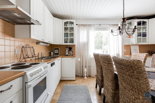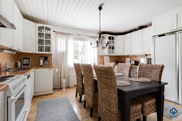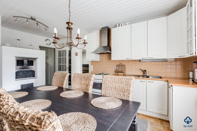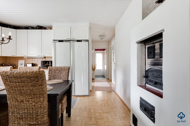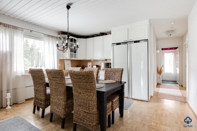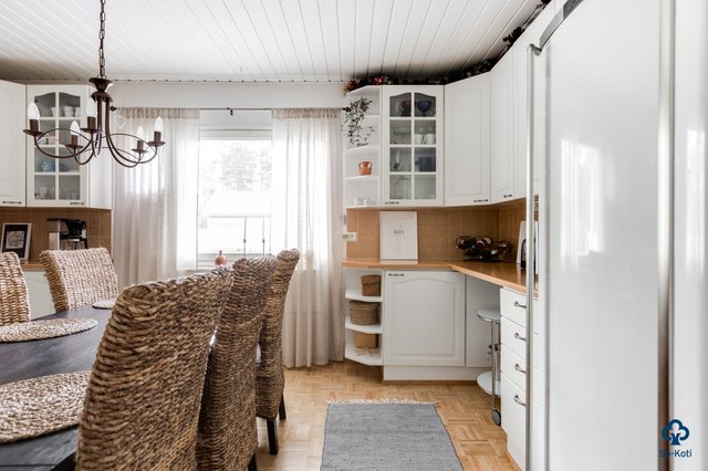 Tilavat 142 m² kätkevät sisäänsä toimivan ja kodikkaan pohjaratkaisun. Valoisa olohuone suurine ikkunoineen tekee vaikutuksen heti sisään astuessa – varaava takka tuo tilaan lämpöä ja luo tunnelmaa kylmiin talvi-iltoihin. Hyvin varusteltu keittiö toimii kodin sydämenä, ja siellä oleva leivinuuni kutsuu kokoamaan perheen yhteen niin arkiseen kokkailuun kuin herkullisiin leivontahetkiin. Kodista löytyy kolme tilavaa makuuhuonetta, ja tarvittaessa olohuonetilasta on mahdollista muokata vielä yksi lisähuone.