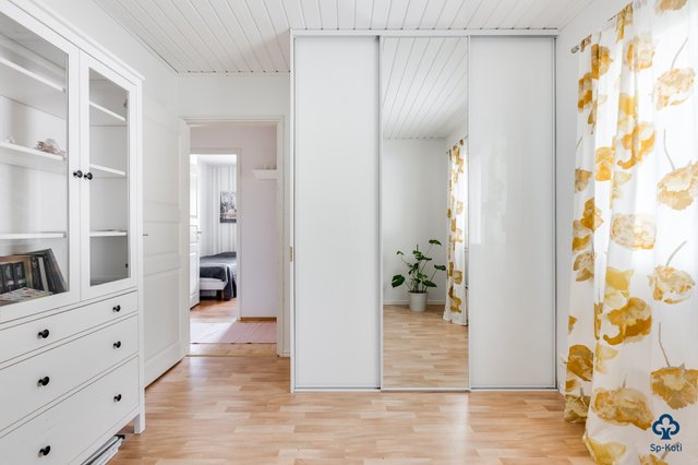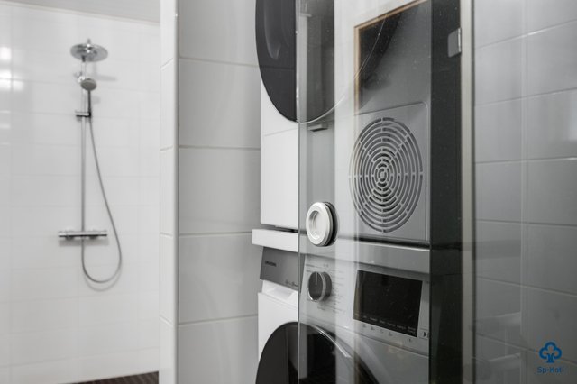 - Uusittu 2015 Kylpyhuoneen yhteydessä syvennys pyykkihuollolle, jossa liukulasiovet.