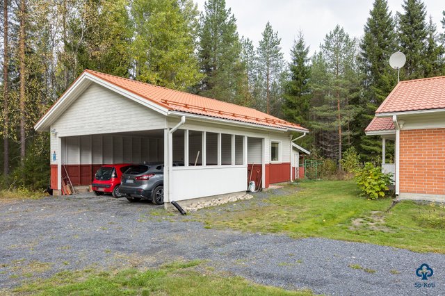 - Ei tarkistusmitattu. Pinta-ala voi siis olla edellä mainittua pienempi tai suurempi. Asuinrakennuksen huoneistoala on rakennuspiirustusten mukaan 142,2m² ja kerrosala 158,4 m². Talousrakennuksen (autokatos/varasto) kerrosala on omistajan ilmoituksen mukaan: varasto 36,5 m² ja autokatos 46 m².