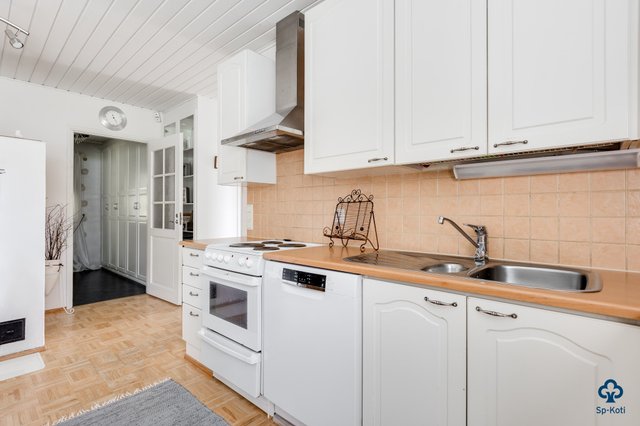 - Jääkaappi, erillinen pakastin, uuni, liesi, liesituuletin, astianpesukone, ja leivinuuni