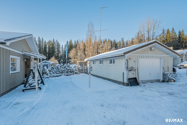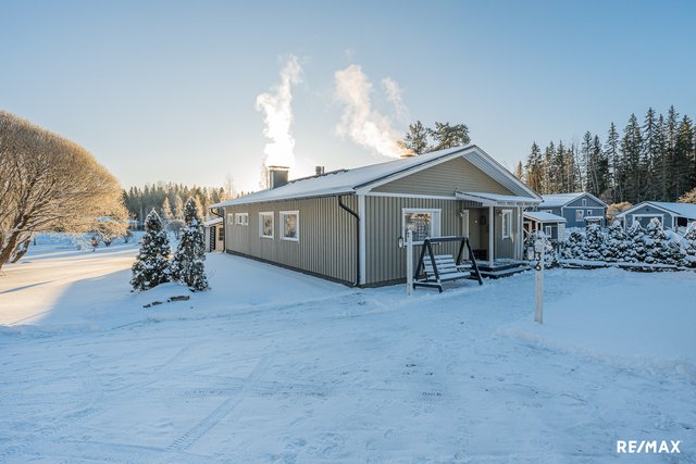 - Päärakennus asuinala 149,5m2, autotalli/varasto 41m2, alavarasto 26 m2 (2013), leikkimökki, joka puuvarastona, kasvihuone, maakellari.