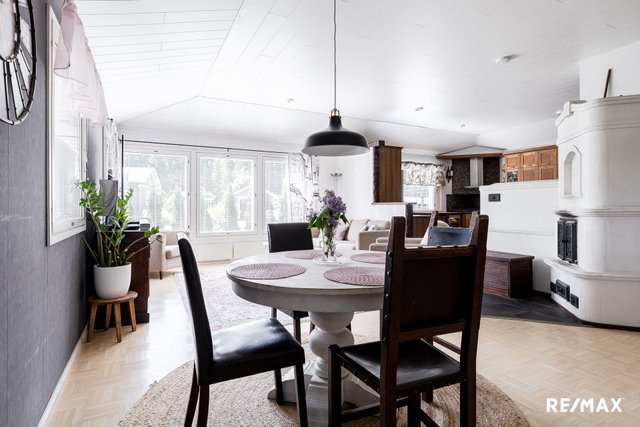 - Parketti, märkätiloissa laatta, takkahuoneessa vinyylilankku.