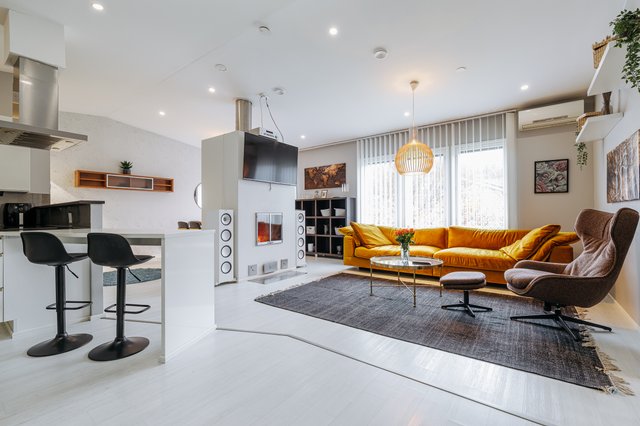 Talon tilavat ja korkeat huoneet luovat avaran ja valoisan ilmapiirin, joka kutsuu viihtymään. Neljä makuuhuonetta tarjoavat runsaasti tilaa perheelle tai vieraille. Keittiö on varusteltu laadukkailla kodinkoneilla ja käytännöllisellä keittiösaarekkeella, ja olohuoneen takka tuo lämpöä ja tunnelmaa viileinä iltoina.