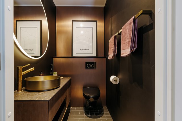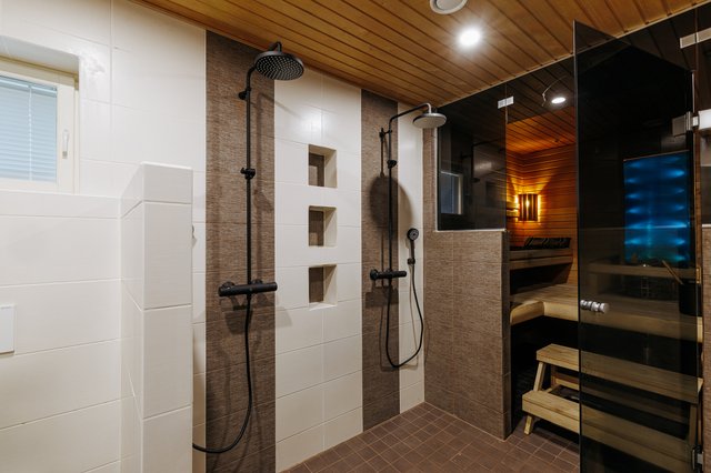 Tilava kylpyhuone, sauna ja erillinen kodinhoitohuone tekevät arjesta sujuvaa. Talossa on myös kaksi wc:tä, joista toinen on juuri remontoitu. Lattiat on uusittu vuonna 2015, ja ilmanvaihtokone on päivitetty vuonna 2024.
