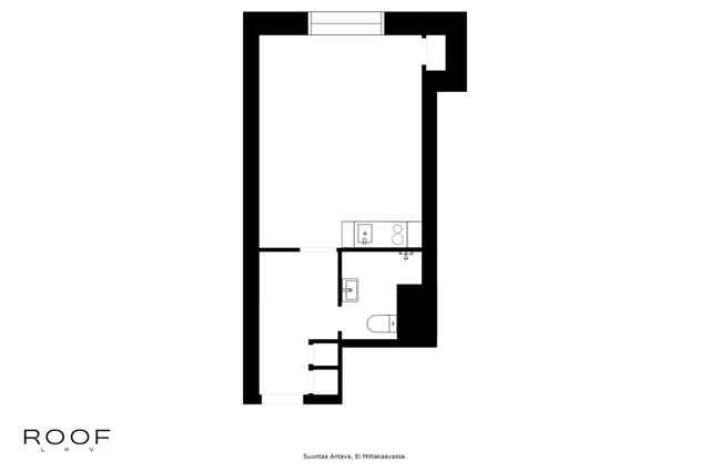 Huone, pesuhuone ja eteinen n. 22,5 m². Soveltuu erinomaisesti vaikkapa sijoitusasunnoksi tai opiskelijaboksiksi.