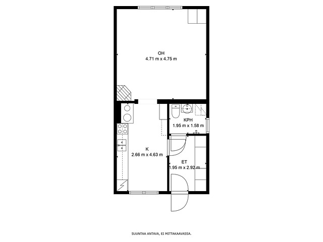 - Edellä mainittu pinta-ala saattaa tämän ikäisessä kohteessa poiketa olennaisestikin huoneiston nykyisten mittaustapojen ja standardien mukaan laskettavasta pinta-alasta. Huoneiston todellinen asuinpinta-ala voi siis olla esitteessä mainittua pienempi tai suurempi