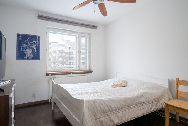 - Reilun kokoinen makuuhuone sisäpihan puolella, jossa on mukavasti säilytystilaa.