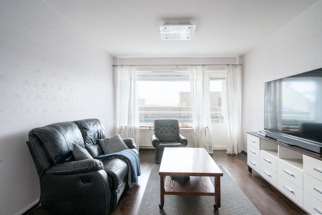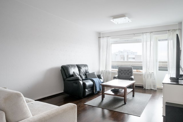 Tämän kuudennen kerroksen läpitalon kaksion pohjaratkaisu on toimiva. Vaaleasävyinen keittiö on kompakti ja kaapistot on uusittu vuonna 2022. Kylpyhuone on tilava, jossa on paikka pyykinpesukoneelle. Olohuone on valoisa ja siitä on kulku lasitetulle parvekkeelle. Makuuhuone on reilun kokoinen ja säilytystilaa on riittävästi. Eteisessä on peililiukuovikaapistot ulkovaatteille sekä vaatehuone antaa lisää säilytystilaa.