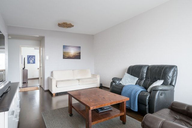 - Valoisa olohuone, josta on kulku lasitetulle parvekkeelle.