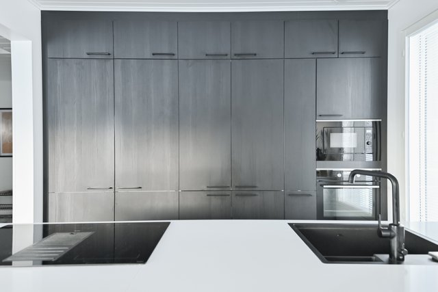 - Astianpesukone, liesituuletin, mikroaaltouuni, viinikaappi, keittiösaareke, erillisuuni, liesi, jääkaappi, ja jääkaappipakastin