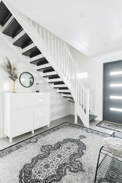 - Seinämateriaalina maali ja kosteissa tiloissa laatta.