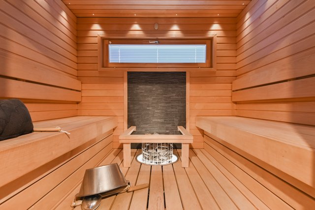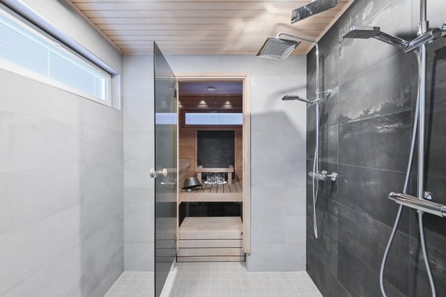 Kolme makuuhuonetta tarjoavat rauhalliset puitteet levolle, ja alakerran makuuhuoneen yhteydessä on kätevä vaatehuone. Kylpyhuoneissa on kaksi sadesuihkua, ja saunassa pääsee rentoutumaan pilaarikiukaan lämmössä. Suurella terassilla on heti valmis poreamme, joka kutsuu nauttimaan saunan jälkeen.