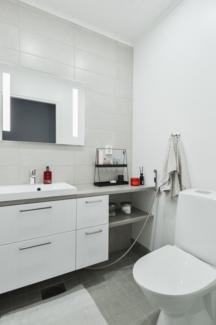 - Alakerran ja yläkerran wc:ssä allaskaapisto, peili valoilla, bidee. Yläkerran wc:ssä kylpyhuonevaraus.