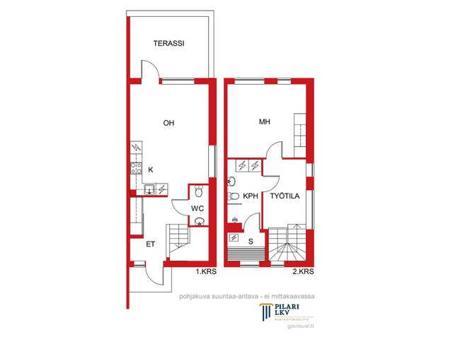 2018 valmistunut asunto on heti vapaa ja edelleen kuin "pakasta vedetty". Huoletonta asumista vuosiksi eteenpäin. Alakerrassa on avokeittiö ja olohuone sekä kivan kokoinen aidattu terassi, johonka käynti suoraan olohuoneesta. Yläkerrassa on tilava makuuhuone, työtila/ aula sekä tunnelmallinen sauna ja pesuhuone. Molemmissa kerroksissa on wc.