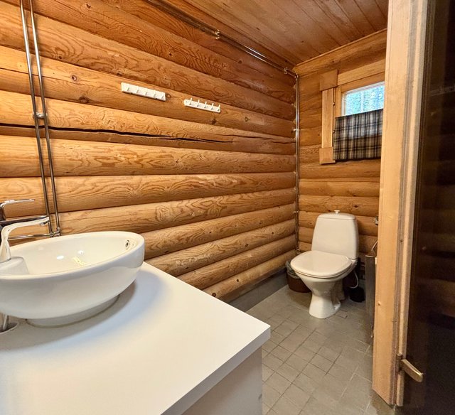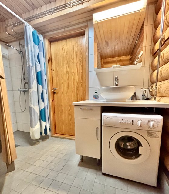 - Suihku, wc-istuin, pesukone, peilikaappi, allaskaappi, bidee-suihku, pesuallas, ja lattialämmitys
