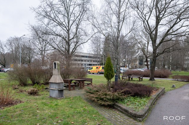 Kauppakeskus Ristikko on kävelymatkan päässä ja tarjoaa monipuoliset päivittäistavarapalvelut. Konalan liikuntapuisto sekä hyvät julkisen liikenteen yhteydet löytyvät lähietäisyydeltä. Omalla autolla liikut näppärästi niin Kehä I:lle kuin Kehä III:llekin.