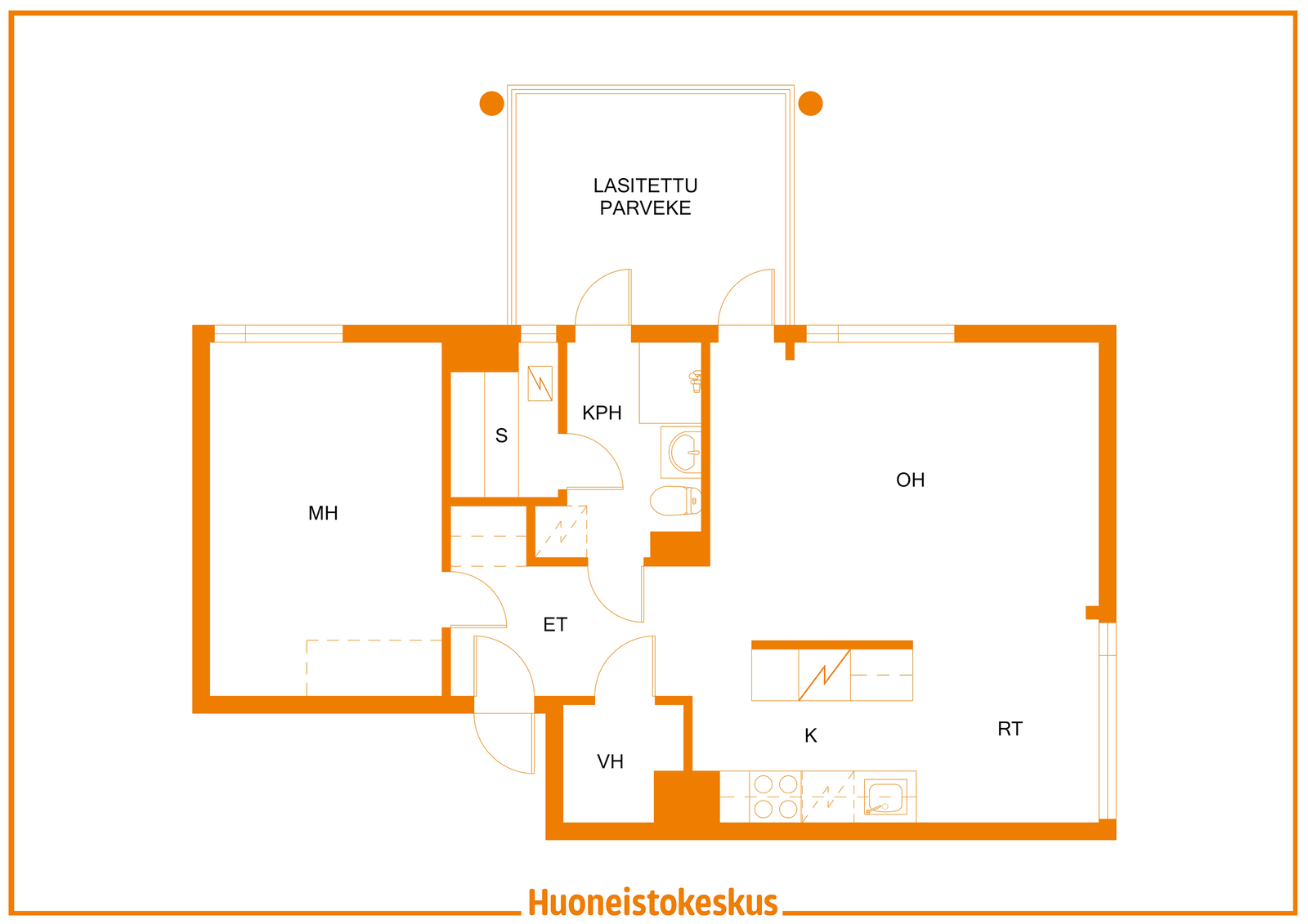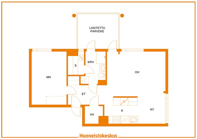 mh, oh, k, rt, kh, s, lasitettu parveke (yj:n mukaan 2h+k+s)