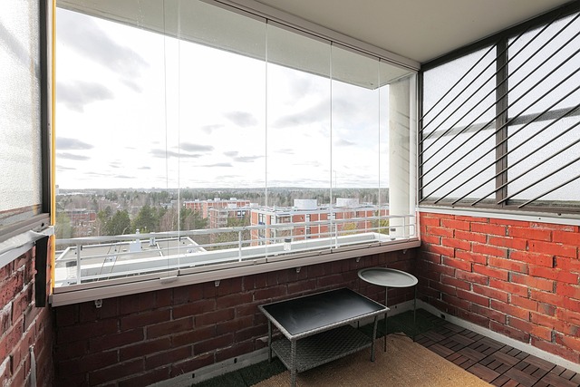 - lasitettu länsiparveke ilta-auringon suuntaan