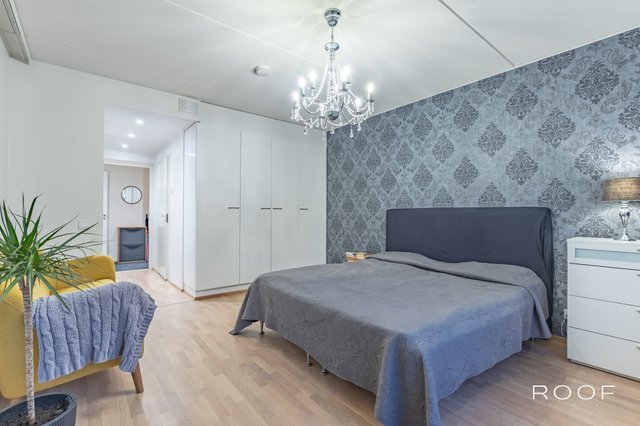 - Makuuhuone 1 (seinä, lattia, kaapisto): Betonielementti (tapetoitu & maalattu), tammiparketti, viisi vaatekaappia Makuuhuone 2 (seinä, lattia,kaapisto): Betonielementti (tapetoitu & maalattu), tammiparketti, neljä vaatekaappia Makuuhuone 3 (seinä, lattia, kaapisto): Betonielementti (maalattu), tammiparketti, kaksi vaatekaappia Suurimman makuuhuoneen yhteydessä oma kylpyhuone.