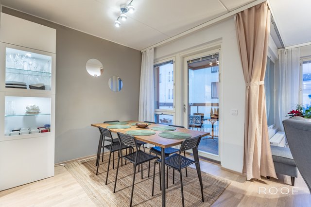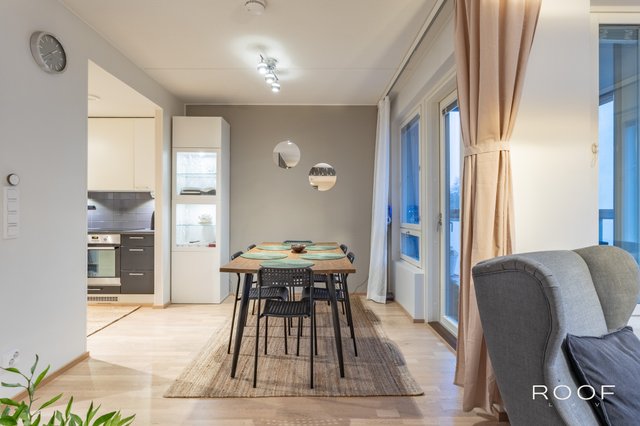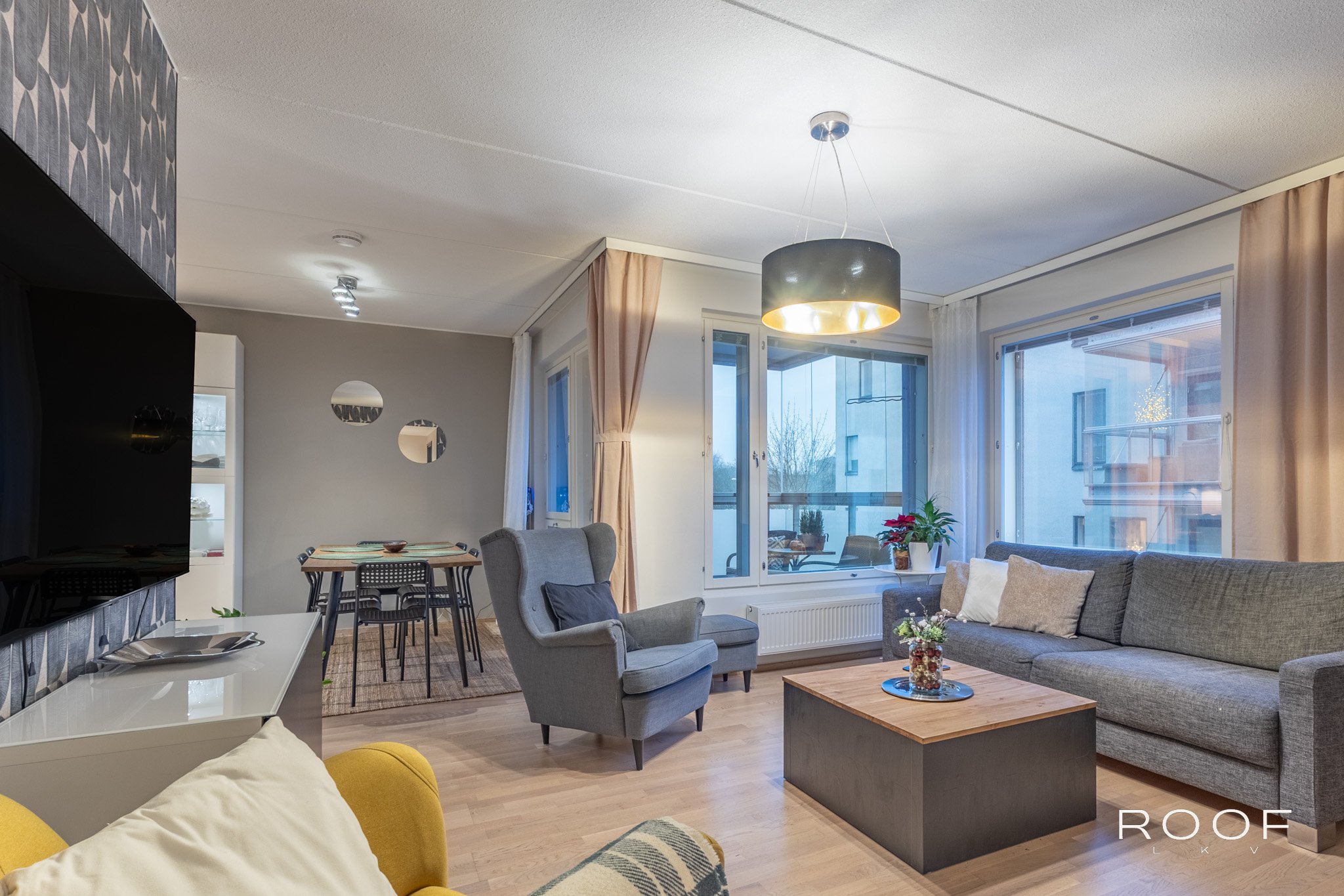 Tämä toisen kerroksen avara ja huolella suunniteltu koti tarjoaa erinomaiset puitteet monenlaisiin elämäntilanteisiin. Asunnossa on kolme makuuhuonetta, erillinen ruokailutila, toimiva keittiö, kaksi kylpyhuonetta sekä valoisa olohuone, josta on käynti suurelle lasitetulle parvekkeelle – täydellinen paikka nauttia vuodenajoista ympäri vuoden.