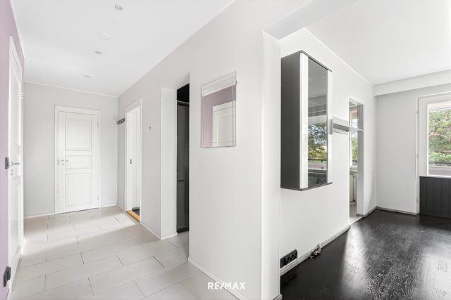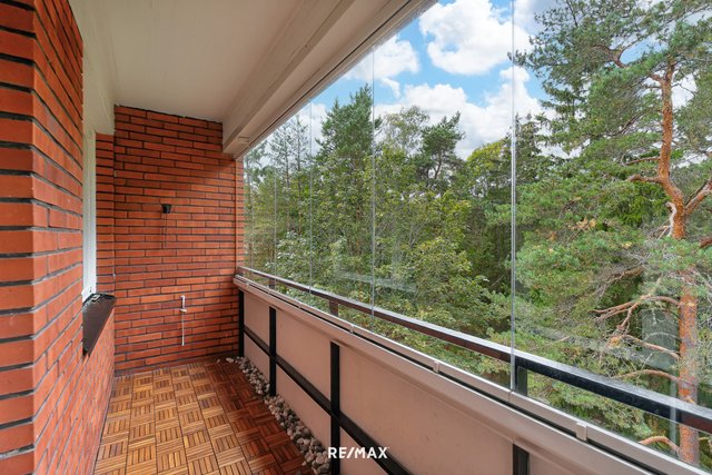 Muuttovalmis asunto, jossa on toimiva keittiö kokkaamiseen ja tila aamiaispöydälle. Valoisan olohuoneen jatkeena on lasitettu parveke. Sisäpihan puoleen avautuvalta parvekkeelta aukeaa metsäinen puistomaisema. Kaksi tilavaa makuuhuonetta on sijoitettu asunnon eri puolille. Kummassakin makuuhuoneessa on kaapistot ja eteisessä on myös vaatekaappi ulkovaatteille. Tilava kylpyhuone, jossa pyykinpesukoneelle on myös oma tilansa.