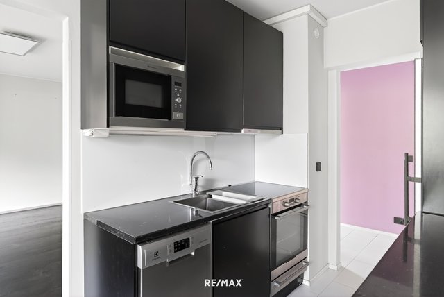 - Keittiössä jääkaappipakastin, induktiotaso, erillisuuni, mikroaaltouuni, astianpesukone. Maalatut seinät, laattalattia, työtasot laminaattia.