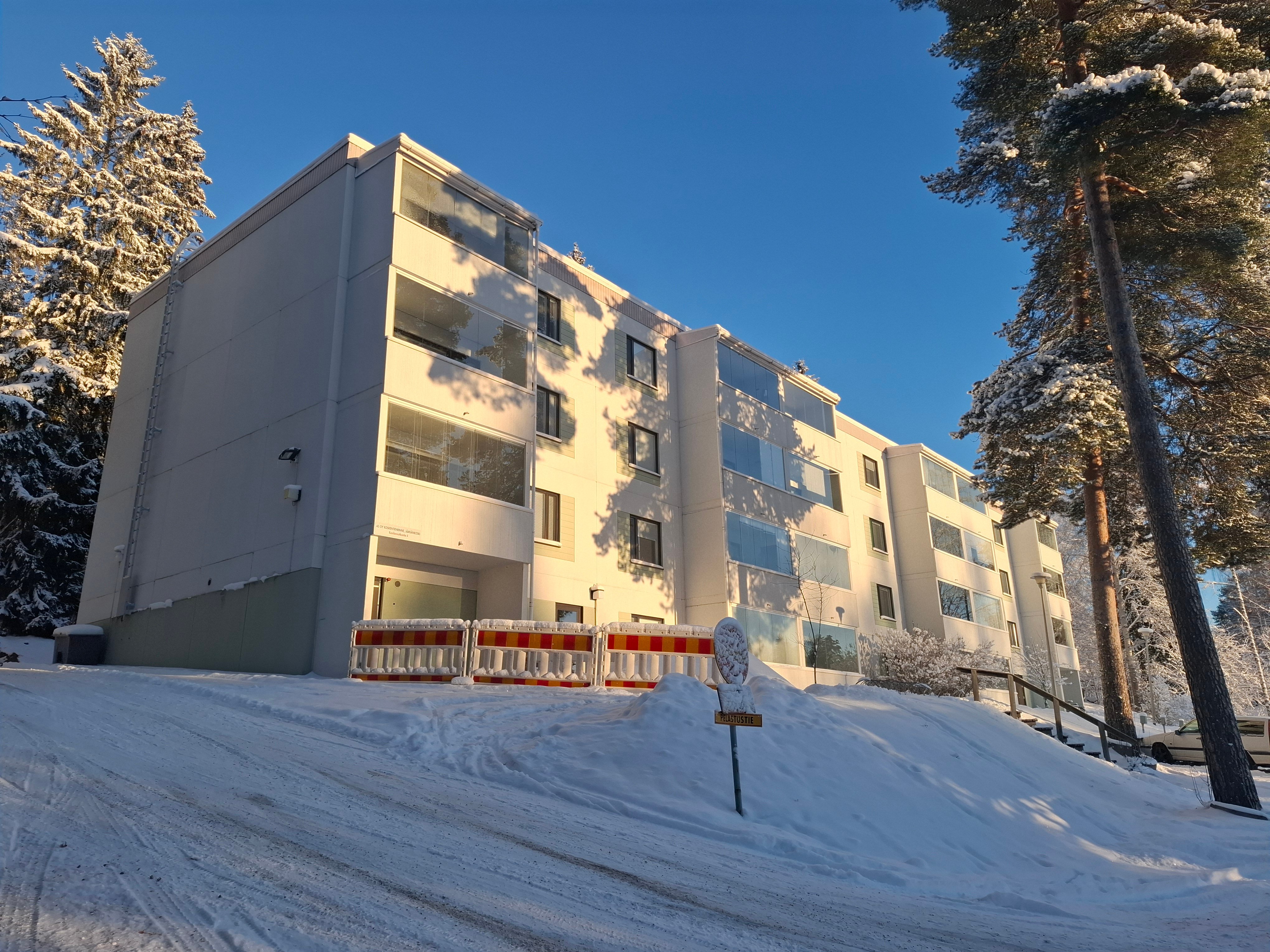 Jämsänkosken keskustan tuntumassa myytävänä ylimmän kerroksen kolmio. Tilava avokeittiö, olohuoneesta käynti lasitetulle parvekkeelle, kaksi makuuhuonetta kaapistoineen ja eteisen yhteydessä tilava vaatehuone.