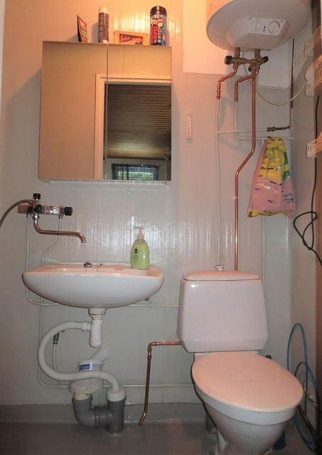 - Suihku, peilikaappi, wc-istuin, ja kiinteät valaisimet