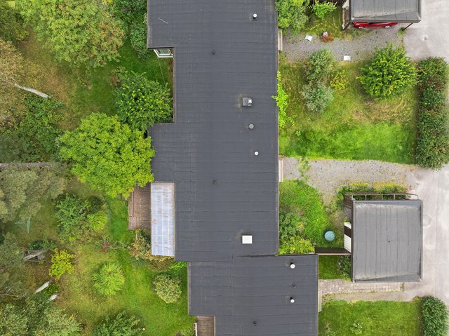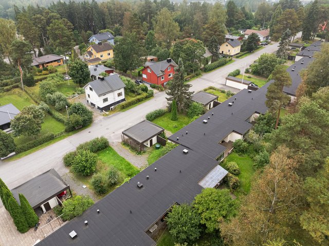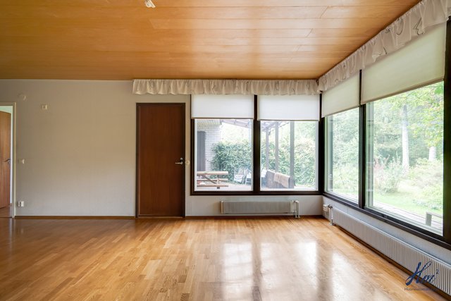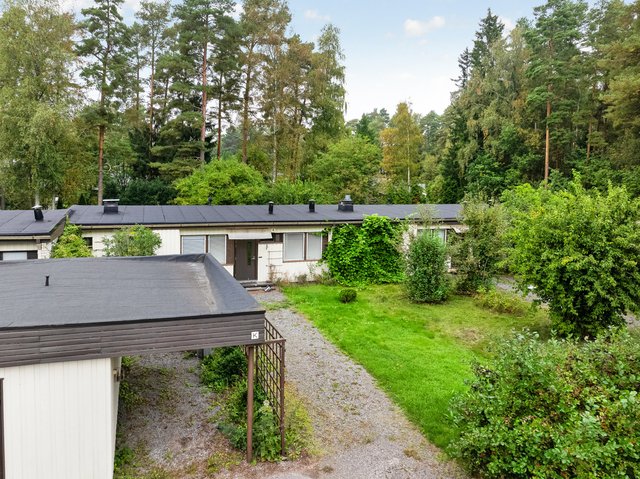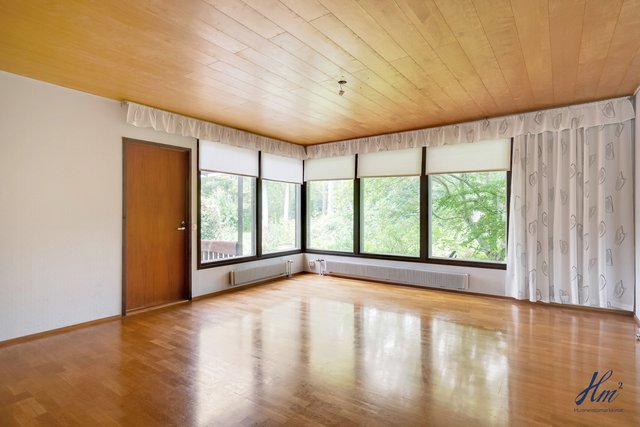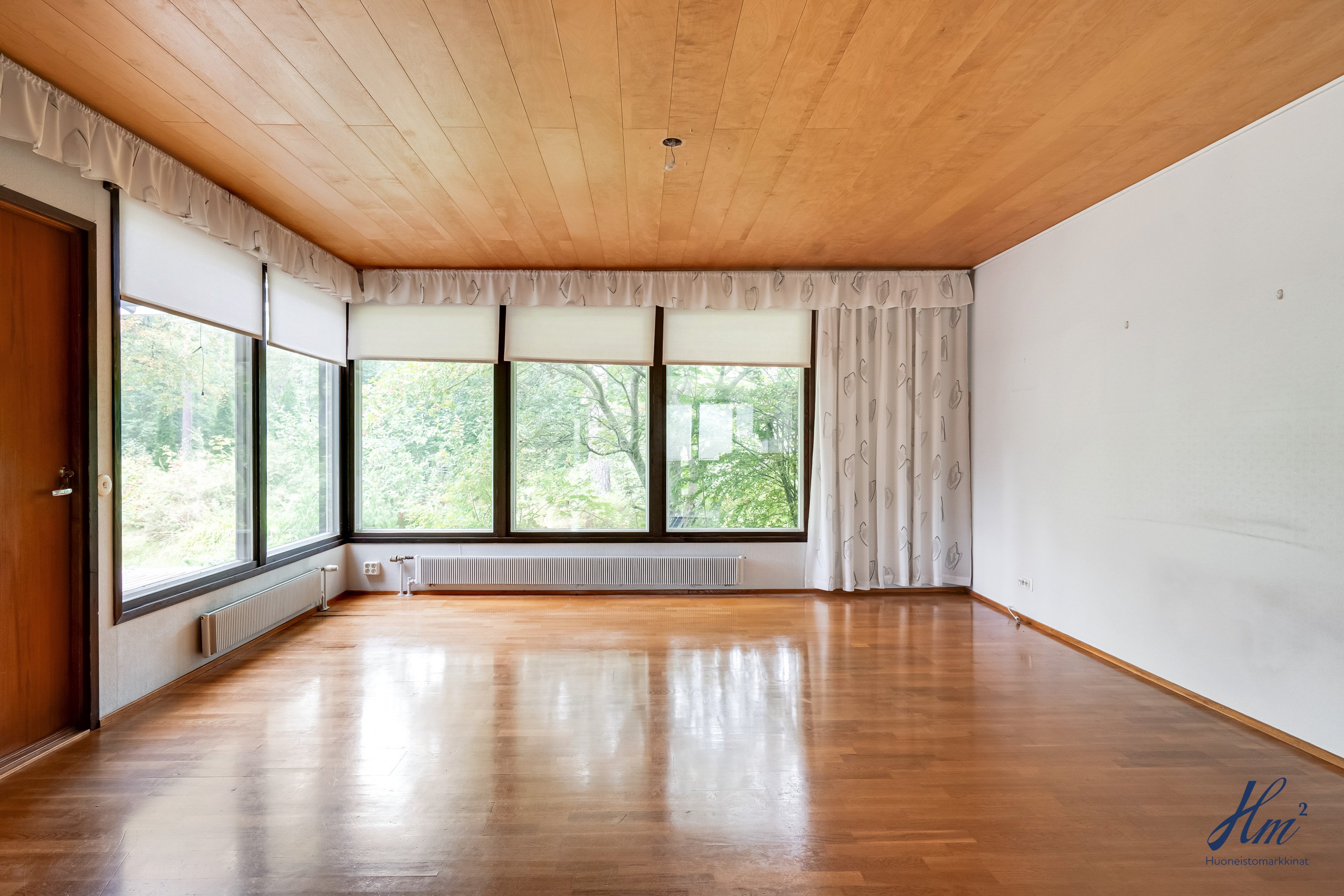 Tämä viihtyisä perhekoti sijaitsee rauhallisella sijainnilla aivan koulujen ja palveluiden läheisyydessä. Upea 70-luvun arkkitehtuuri tarjoaa avarat asuintilat ja suuret ikkunat, jotka tuovat asuntoon runsaasti luonnonvaloa. Keittiö ja tilava olohuone ovat yhtenäistä tilaa, ja kahden makuuhuoneen lisäksi on mahdollista jakaa työhuoneena toiminut tila kolmanneksi makuuhuoneeksi. Asunnon kylpyhuone on remontoitu vuonna 2023, mutta muilta osin asunto kaipaa jo laajempaa pintaremonttia. Todella toimiva pohjaratkaisu tarjoaa loistavat puitteet remonttitaitoiselle loihtia tästä oman näköisensä koti. Olohuoneesta on käynti takapihalle, josta löytyy tilava osin katettu terassi ja viihtyisä pihapiiri. Taloyhtiön tontti rajautuu takapihojen osalta puistoalueeseen, joka tuo mukavaa yksityisyyttä pihalle. Etupihan puolelta löytyy autokatospaikka sekä pihavarasto.
