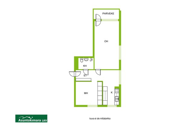 - Ei tarkistusmitattu. Pinta-alat saattavat tämän ikäisissä kohteissa (yhtiö rekisteröity ennen 01.01.1992) poiketa olennaisestikin asuinrakennusten nykyisten mittaustapojen ja standardien (SFS 5139) mukaan laskettavasta asuintilojen pinta-alasta. Pinta-ala voi siis olla edellä mainittua pienempi tai suurempi.