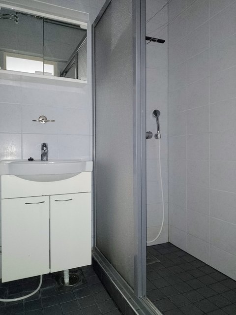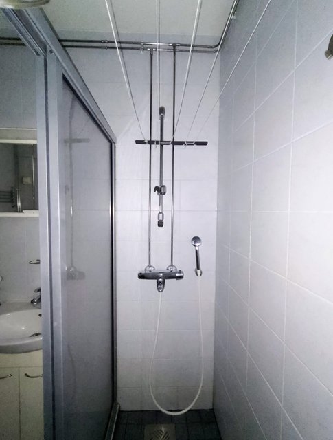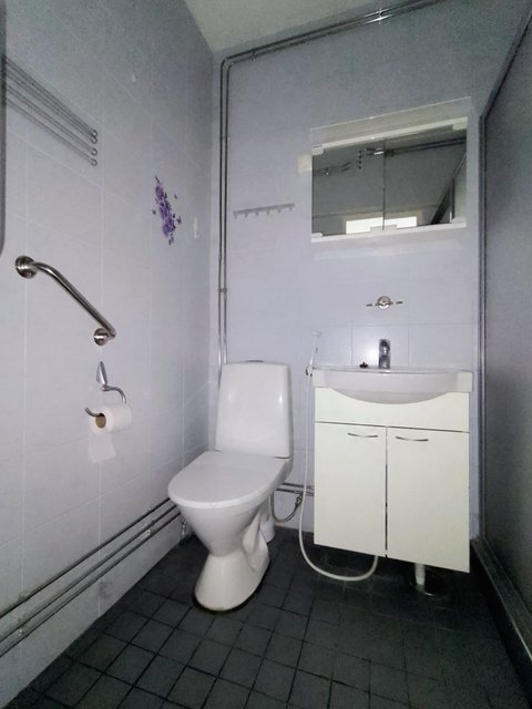 - Suihkuseinä, pesukoneliitäntä, peilikaappi, allaskaappi, wc-istuin, suihku, pesuallas, ja bidee-suihku